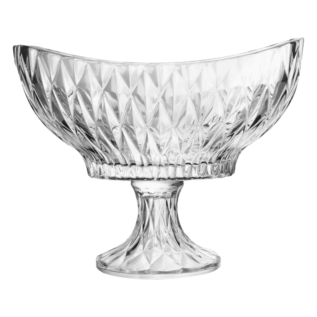 Este centro de mesa é extremamente versátil, podendo ser usado para decorar com flores, frutas ou até mesmo como uma peça independente. Seu pé elevado adiciona um toque extra de elegância e facilita a visualização do conteúdo. A superfície lisa e cristalina facilita a limpeza, garantindo que a peça esteja sempre impecável e pronta para impressionar seus convidados.