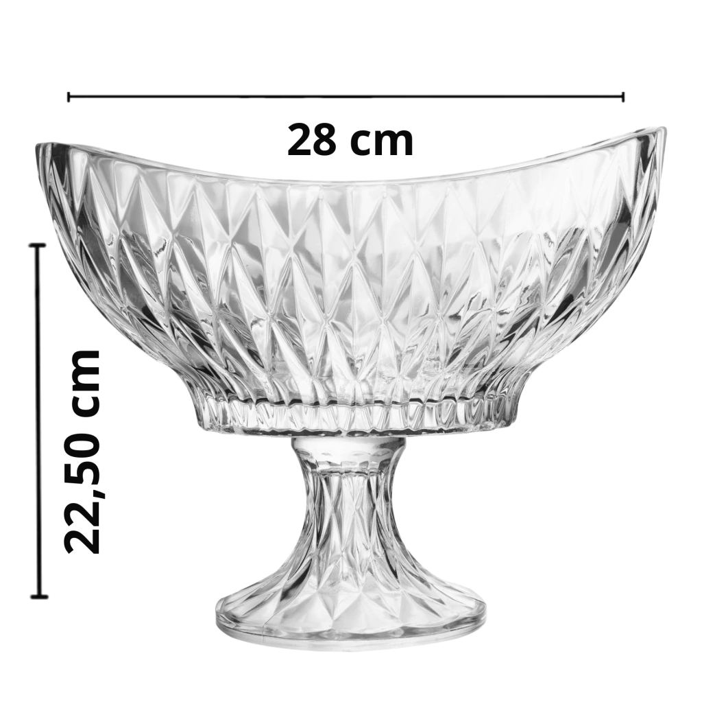 O Centro de Mesa co Pé Diamond apresenta um design refinado com detalhes lapidados que refletem a luz de maneira encantadora, criando uma atmosfera luxuosa eacolhedora. Com dimensões de 28cm x 15 cm, é a peça ideal para ser o destaque em qualquer mesa, seja em jantares formais ou encontros casuais.