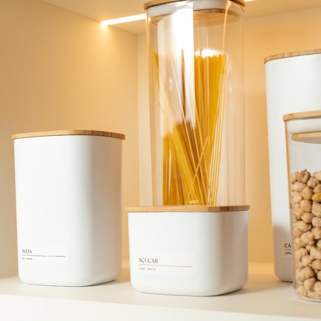 O Kit com 4 Potes Herméticos Keep é perfeito para quem valoriza organização e cuidado com os alimentos, promovendo tranquilidade e bem-estar em cada detalhe da rotina. Com tampas em bambu, um material 100% renovável, esse kit é uma opção sustentável e sofisticada para decorar e organizar a sua casa.