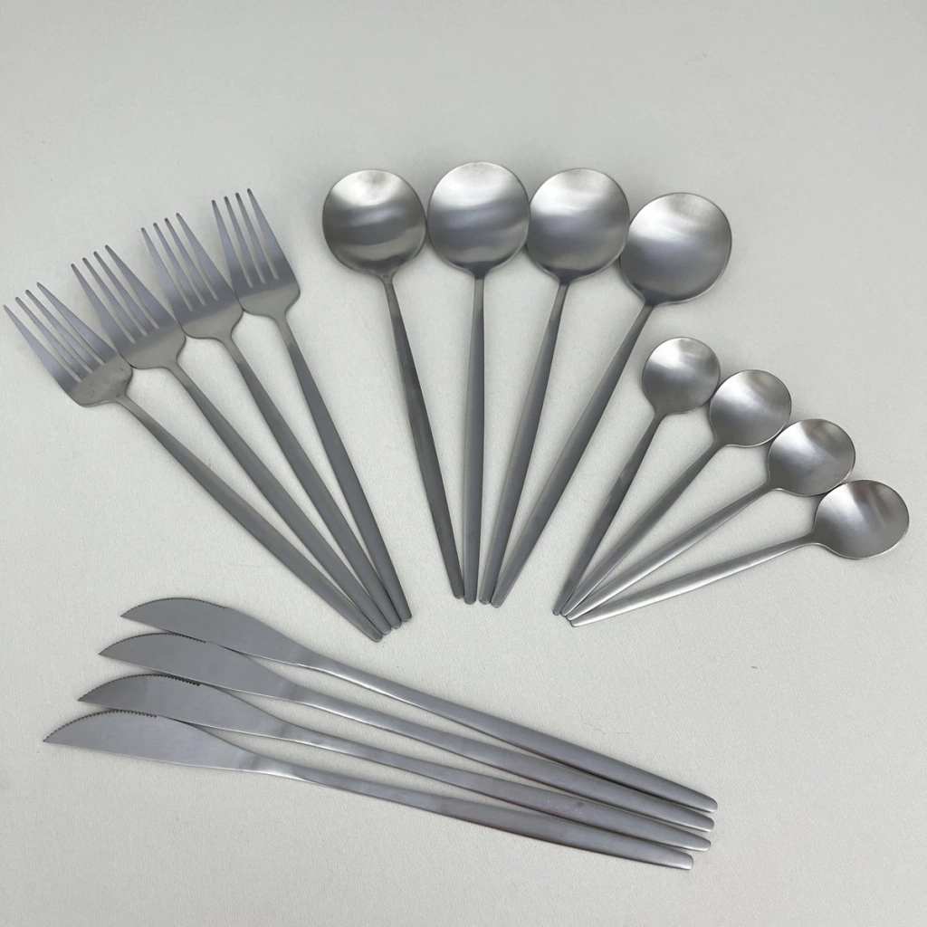 Este conjunto de talheres 16 peças com design simples para um visual moderno atraente torna seu jantar diário extraordinário e cria um ambiente decente para qualquer evento especial.