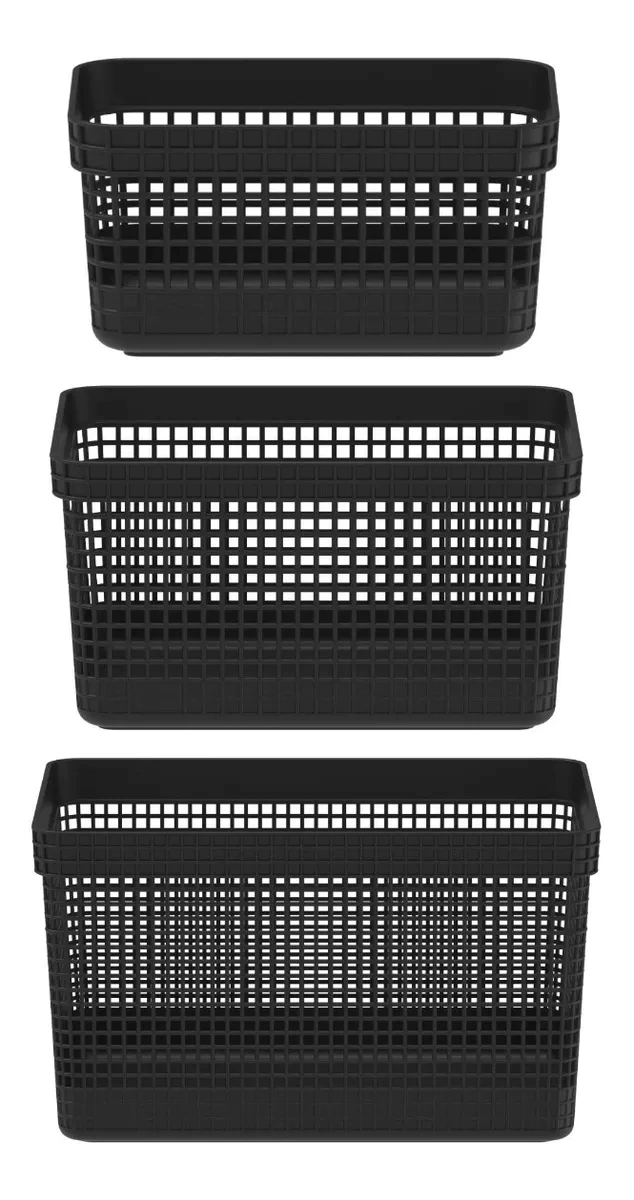 Os cestos organizadores são funcionais e multiuso produzidos em plástico para organização e otimização de ambientes como cozinhas, lavanderias, closets, banheiros, escritórios, refeitórios, despensas, lojas.