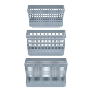 Possui paredes vazadas e pegas para facilitar o manuseio, e tampas tornando-os empilháveis e modulares. Ideal para organizar todos os ambientes, por ser um cesto grande é muito útil para organizar brinquedos, mantas, almofadas e etc, além de úteis na organização, são peças que podem ser usadas como decoração.