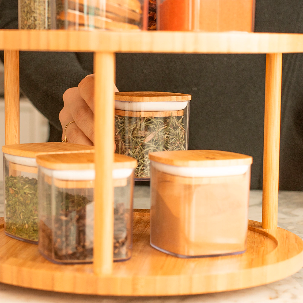 01 Organizador Giratório Keep Bambu + 08 Potes Herméticos Keep 150ml