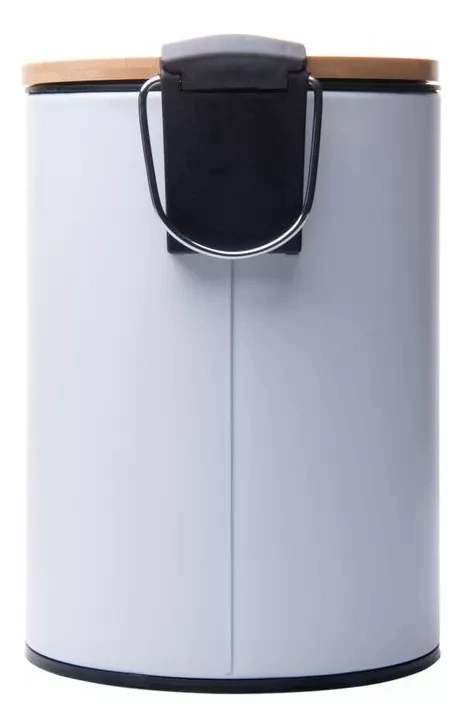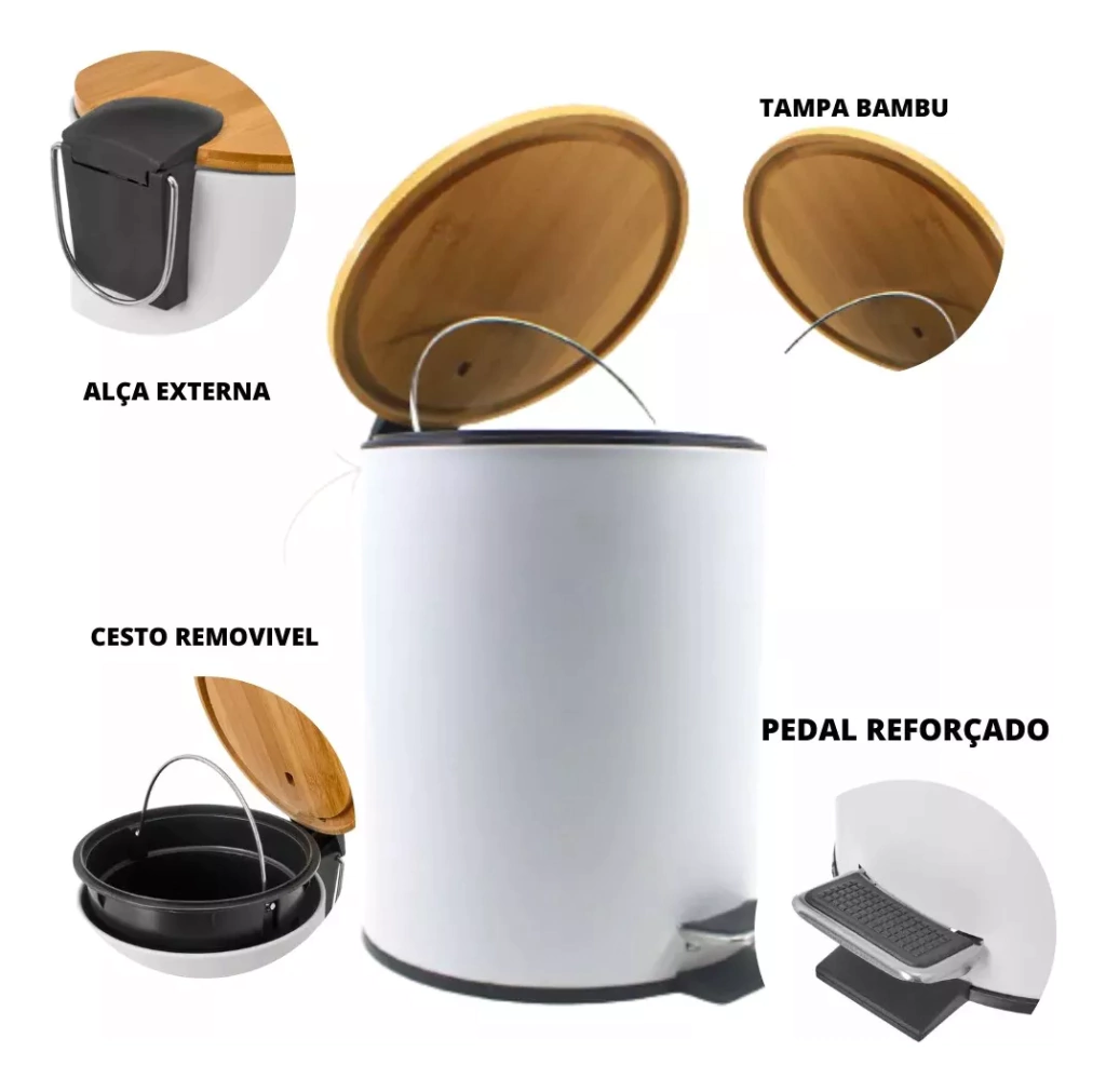 Fabricada em metal resistente, a lixeira garante durabilidade e robustez, oferecendo uma solução confiável para o descarte diário de resíduos.