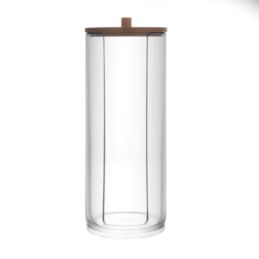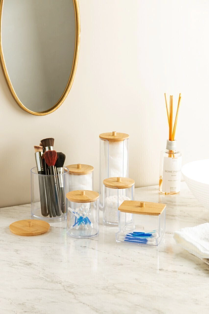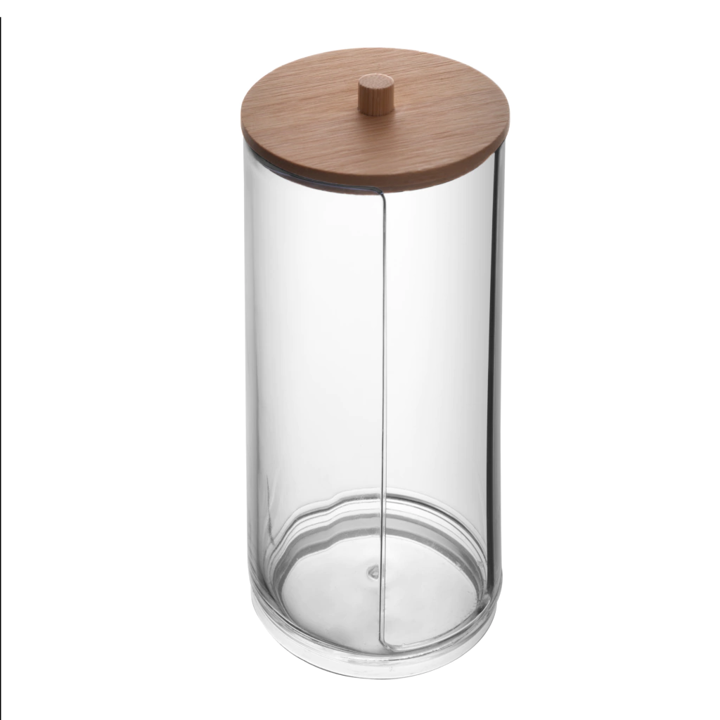 Porta Algodão de Poliestireno com Tampa de Bambu My Box 7cm x 7cm x 18cm – Lyor